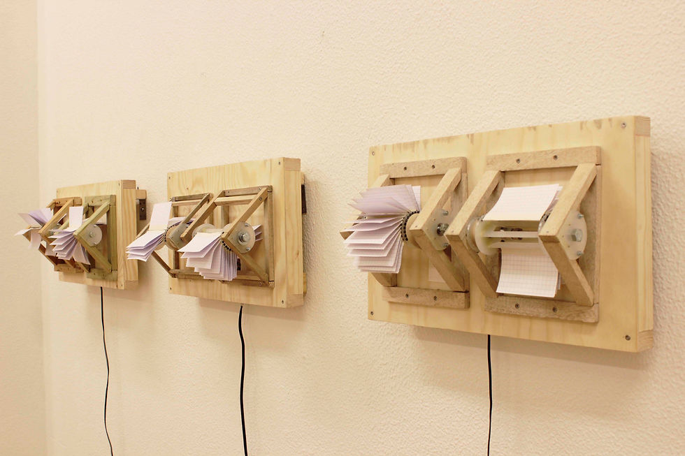But it is not possible to see time, measure time. Everything is within time and time does not halt. What we measure and experience, or put forth as the object time, what remains, is not time, it is something else. A mobile, drawings, paintings, machines and devices, a music box, tape. Time is a metaphor."